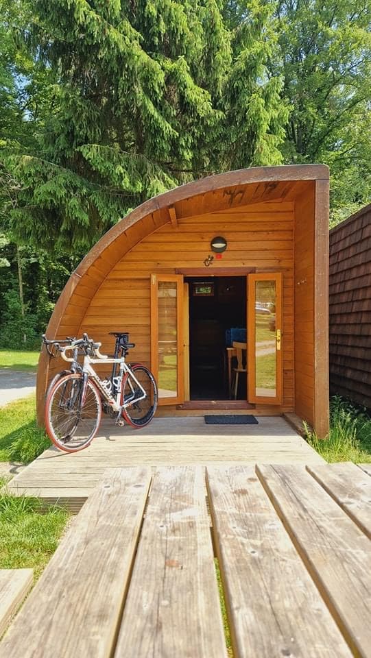 You will to go camping, but don’t have to bring your tent, ideal if you do a hiking or cycling tour, or if you travel by motorcycle and don’t want to have much luggage. Or you are already camping with us and you have visitors that want to stay overnight. Waking up and opening the glass doors of your Quartier Pod, you will stand on the terrace and feel one with surrounding nature. Our Quartier Pod huts are small accommodations without inventory that can be rented per night, you have to brin...