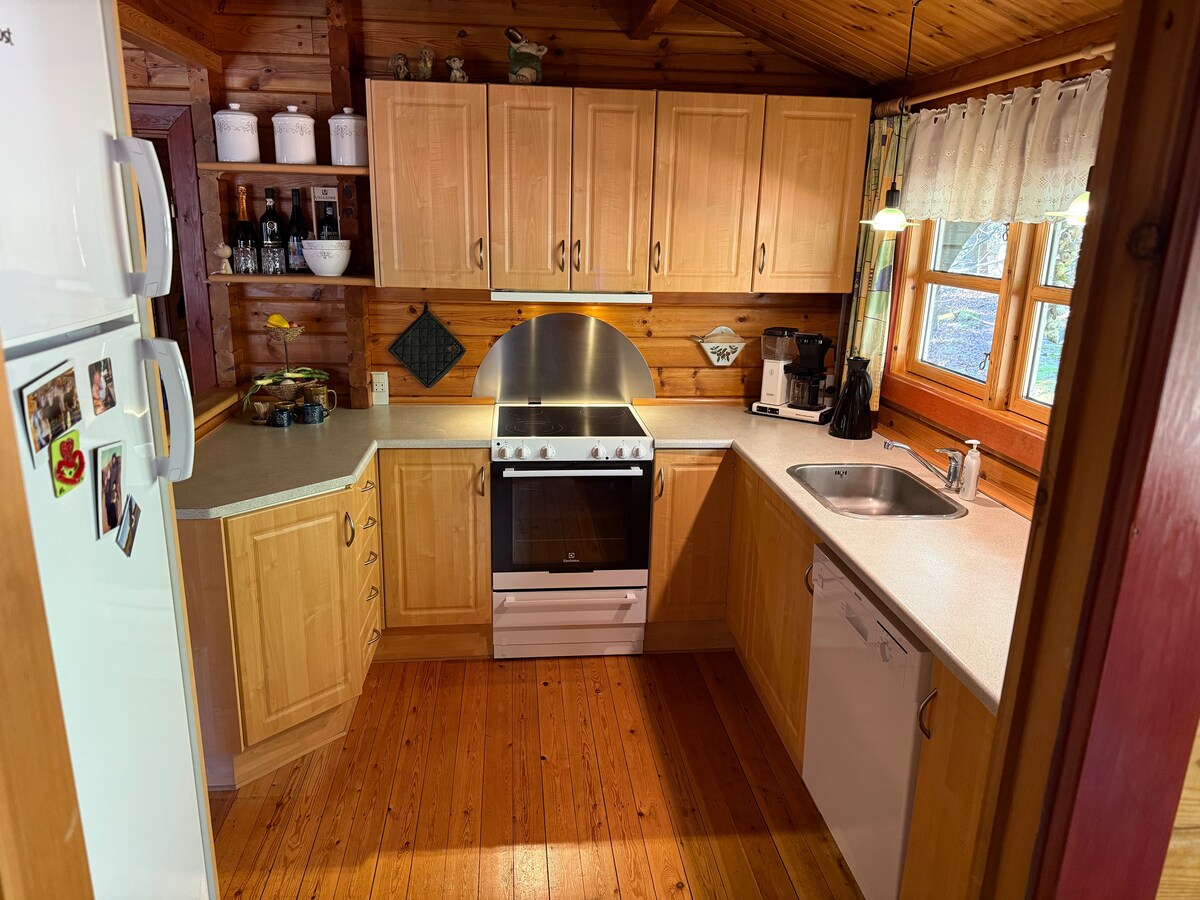 Beautiful log house on a large secluded plot with a trail system in its own forest. The cottage invites you to enjoy coziness and presence in a quiet setting. Evenings can be spent around the wood stove or by the fireplace. The bright morning hours can be spent in the conservatory with a great chance of seeing roe deer, fallow deer, squirrels and forest birds very close by and the view is very unique. Approximately 1 km walking distance to a beach suitable for swimming. Approximately 4 km to shopping in Voerså, where there is also canoe rental for the river. Approximately 10 km to the cozy port town of Sæby with eateries.