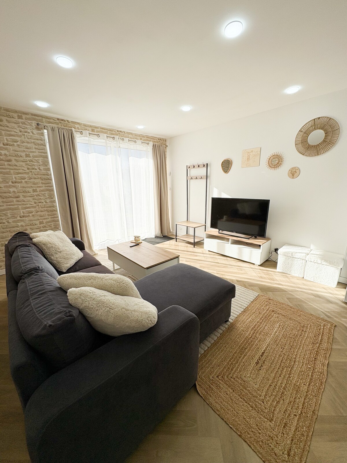 Le Cocoon - Profitez d'un logement élégant et décoré à proximité de tous les services du centre ville. Linge de lit en percale de coton, grand écran TV, wifi, espace bureau, lave linge, cuisine équipée, snack et petit déjeuné. lit parapluie et chaise bébé disponible sur demande pour 5€ supplémentaires.
