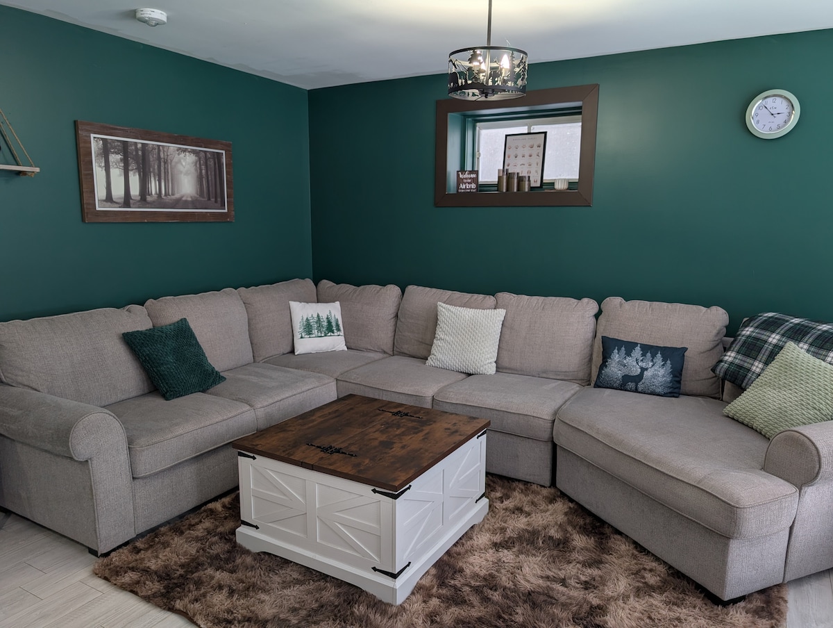 Kick back and relax in this calming, stylish space. Privacy is key to this newly renovated property. The windows and doors have privacy screen on them. Attention to detail at every corner. Enjoy a Nespresso at the Coffee Bar, curl up on the large sectional couch, watch your favorite movie, or sit on the back porch and enjoy some fresh air. Forgot something? We've got you covered with our welcome basket full of essentials and extras to make your stay wonderful. Close to snowmobile trails.