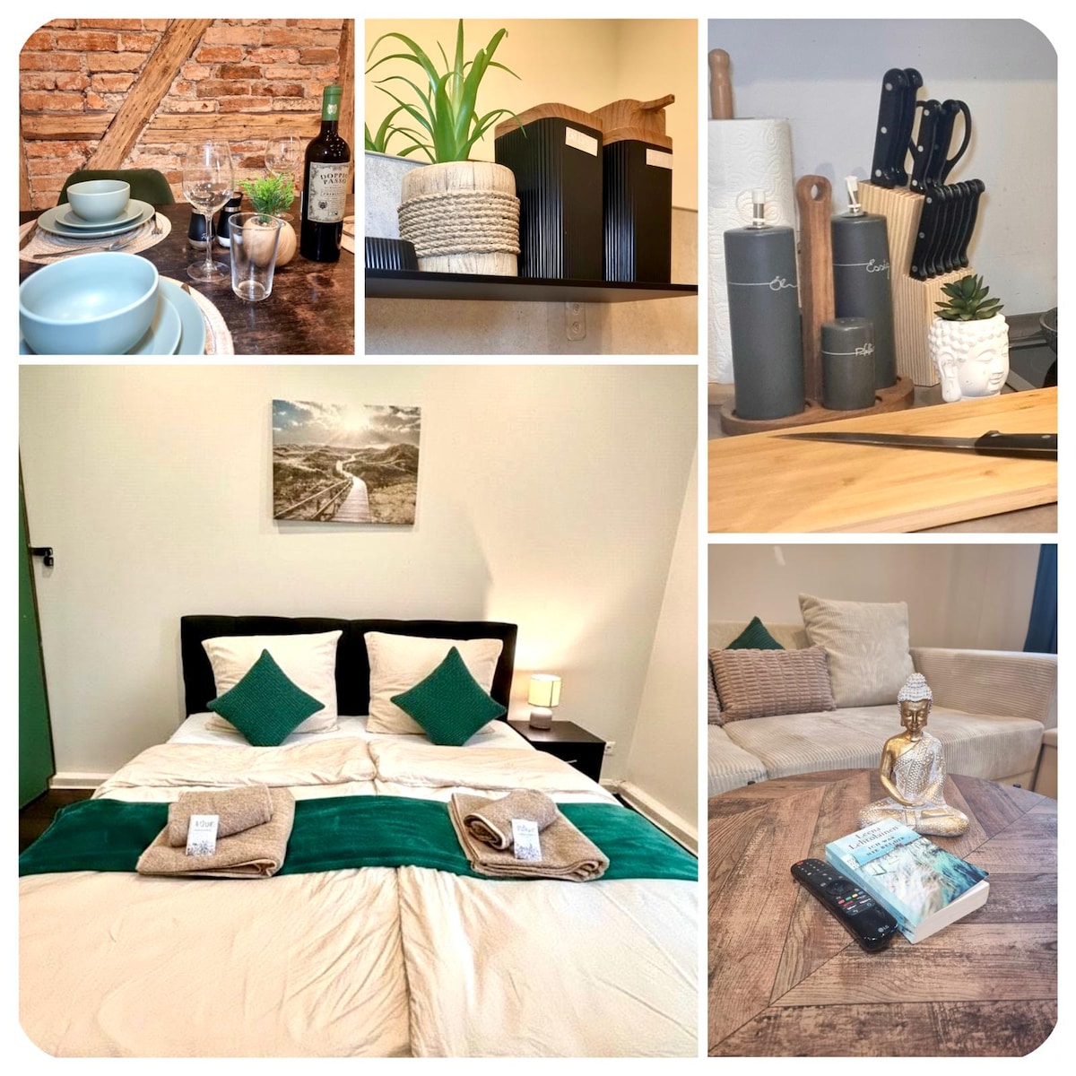 Super Moderne Unterkunft im Zeitlosen Stil. Sehr Zentral gelegen, Im Herzen von Cottbus. -Wlan,Tv -EinbauKüche -Wc -Dusche -Bett 180m -Schlafcouch 130m Checkin Über SchlüsselTresor. Öffentlicher Parkplatz direkt vor der Tür. Eine Neue Einbauküche mit modernen Geräten. Platz für 4 Personen, auch Schlafmöglickeiten für 4 Personen verfügbar. Babybett, und Stuhl kostenlos nutzbar. Den SchlüsselTresor Code erhalten sie 24 Stunden vor der buchung.Bettwäsche Handtücher werden gestellt.