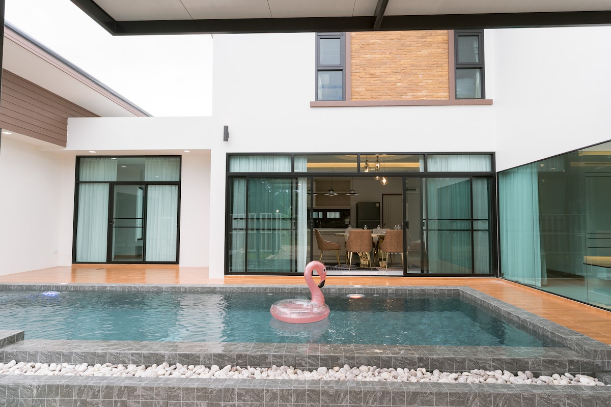 พูลวิลล่าส่วนตัว รองรับกรุ๊ปใหญ่ 20-40 ท่านได้ มีทั้งหมด 13 ห้องนอน บ้านสองหลังติด -เสียงดังได้ มีโซนปาร์ตี้ 2 โซน -ปาร์ตี้หนักได้ไม่รบกวนใคร -ร้องเพลง 2 โซน มีข้างสระน้ำและห้องแอร์ -ห้องสนุ๊กติดแอร์ โต๊ะใหญ่ 12 ฟุต -สูบบุหรี่ได้ และยินดีต้อนรับสัตว์เลี้ยง -ห่างจากตัวเมือง 30 กิโลเมตร -บริเวณสระน้ำ เสียงดังมากๆได้จนถึงเที่ยงคืน นั่งคุยได้จนถึงเช้า -สระว่ายน้ำส่วนตัวระบบเกลือแบบน้ำล้น -พื้นที่ปิด แบบส่วนตัว กว่า 7 ไร่ -จอดรถได้มากกว่า 20 คัน -กล้อง CCTV รอบบ้าน มากกว่า 16 ตัว