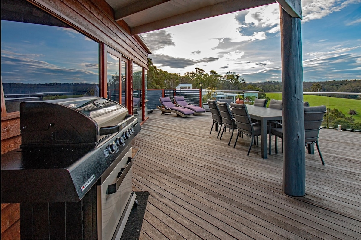 Reconnect with nature in the comfort of modern luxury. With 180 degree views of the coast, mountains and river, the newly built Sunhouse Tathra is your place to escape. Soak up the morning sun with a coffee on the timber deck or enjoy a glass of wine in the outdoor bath as the sun sets behind the mountain. Whether you are seeking a peaceful place to unwind or an adventure filled getaway enjoying our local national parks and pristine waters, Sunhouse Tathra is the perfect choice.