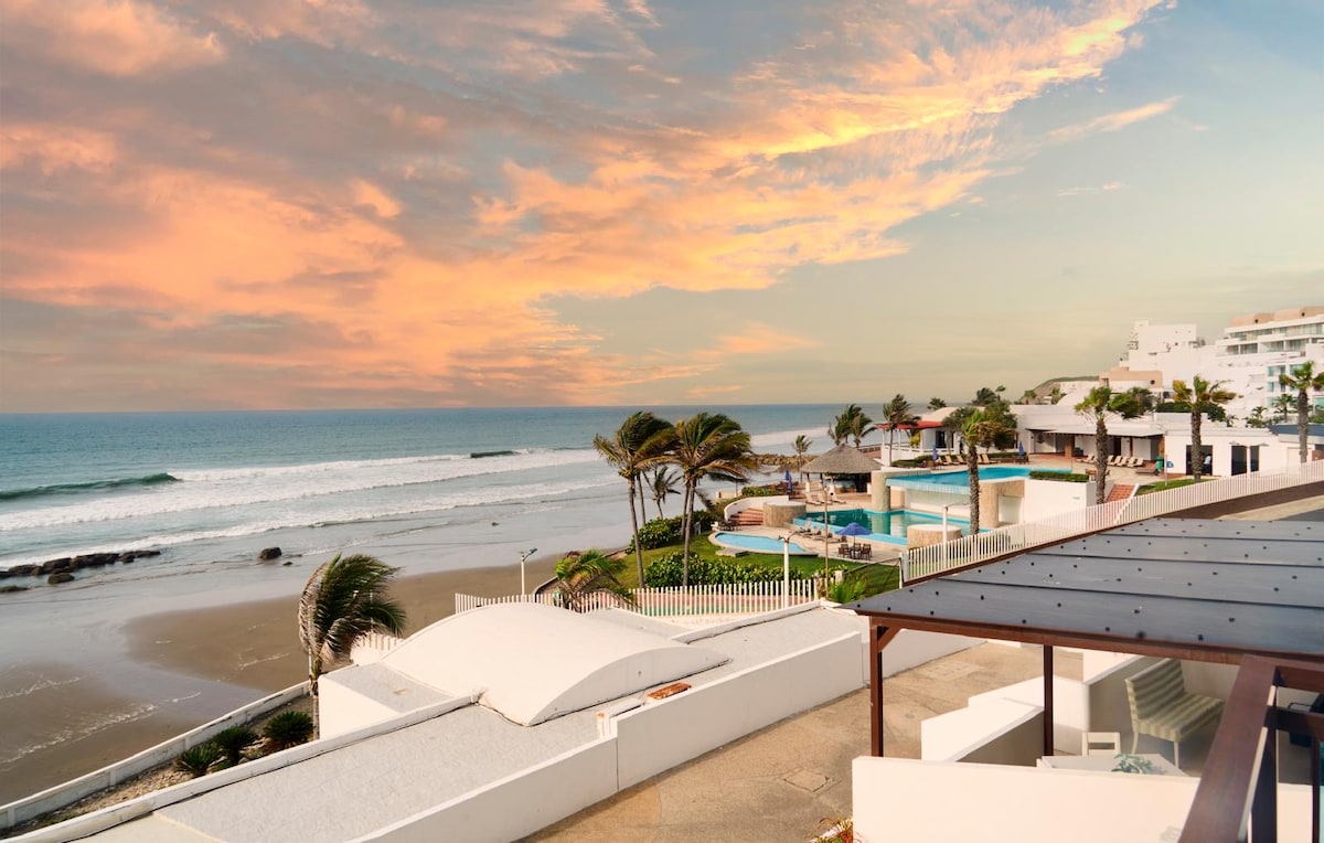 Life is about moments! Build memories to treasure in our unique beach front spot with pool, free parking and great views. Enjoy our modern cozy beach place, where you will find a fully equipped kitchen, comfy rooms with blackout curtains and a balcony to enjoy breath taking ocean views and sunsets!☀️ Enjoy local & international cuisine at Montanita & Olon (8 mins away) or find an adventure near by (paragliding, waterfalls, surf lessons) 2 Smart 65’ TVs; alexa; beach tent & chairs included!