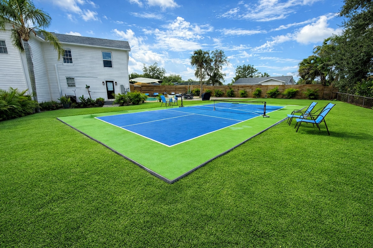 Sunny coastal Retreat + Pool & pickleball Court