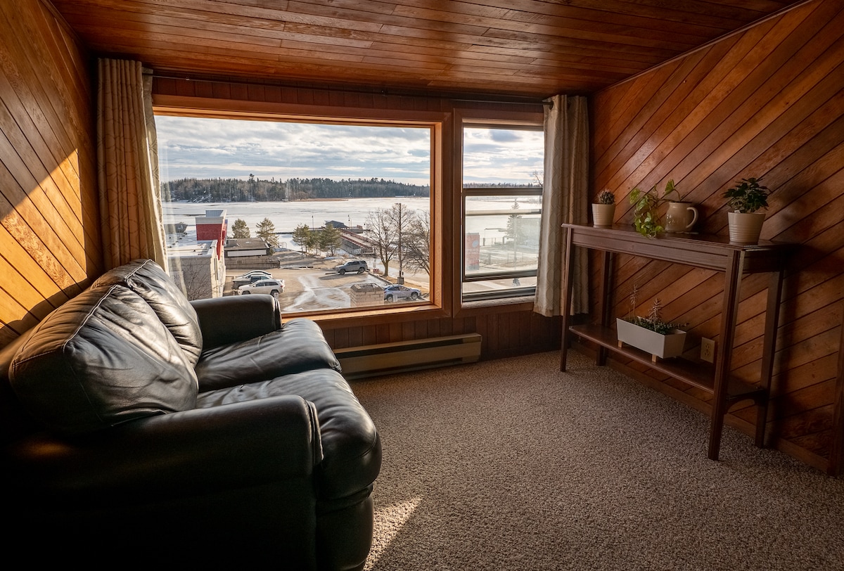 Welcome to our cozy 3rd-floor apartment in downtown Kenora! Located in a beautiful old building with amazing lake views, just steps from shops, restaurants, and groceries!The suite includes 1 bedroom with a queen bed, full kitchen, 3-piece bath, two comfy couches, smart TV, and rare downtown parking. It’s a multi-unit building where we live too, so no parties or unapproved guests - perfect for a quiet, comfortable stay! Please note: stairs only & low ceiling areas, tall guests (6'3"+) take note