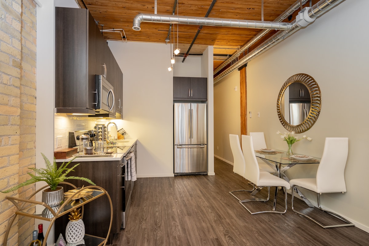 *NEW* parking in the exchange is difficult, we are now offering FREE parking with your stay! Fabulous century old warehouse conversion in the heart of Winnipeg's Exchange District! Where historical charm such as original brick meet modern amenities including private rooftop patio, in-suite laundry, high speed wifi, luxurious linens, and a fully stocked kitchen. This space is tastefully decorated and has everything you may need to have a comfortable night in, or fun night out in the Exchange!