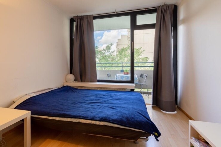 Sympathetic living ambience with flair and style. Trendy and individually designed old building apartment with former shop door, living room with large arched window, oiled oak parquet in all rooms. Modernly designed bathroom with designer fittings and windows, kitchen-living room with gas stove and modern appliances, sleeping gallery, quiet beautiful courtyard balcony. The sleeping gallery has a double bed 160 cm x 200 cm. In the living room there is also a sofa bed. 160 x 200. The apartment is rented as a whole. 69 sqm