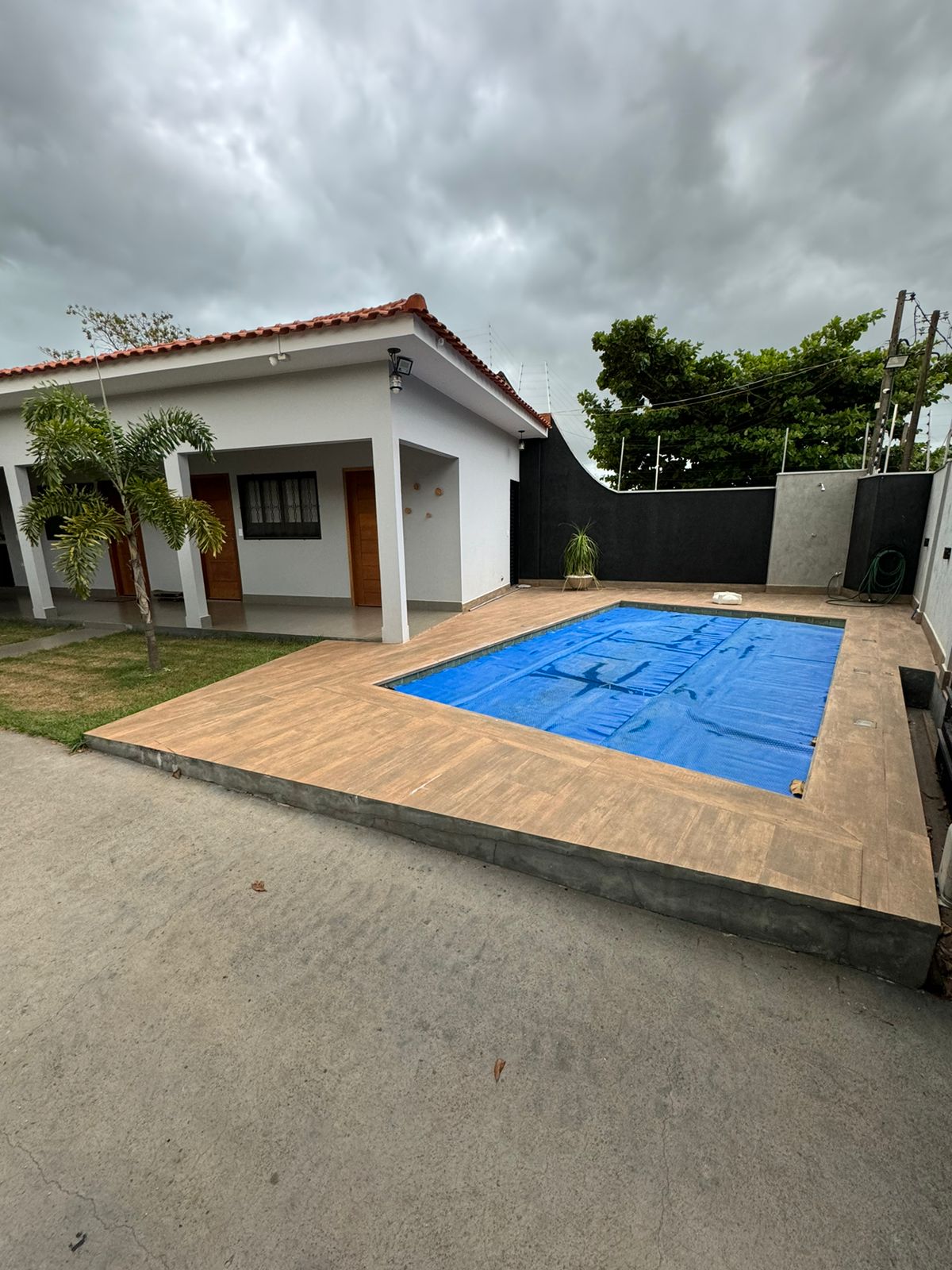 Enjoy this cozy accommodation with your family and friends. Private swimming pool (no street view). Safe accommodation in a charming neighborhood of the city. Enjoy and appreciate the wonders of the Paraná River with its natural beaches that the city of Porto Rico/Paraná offers! THE HOUSE 1 queen bed (suite), 1 double bed (bedroom 01), 1 single bed and 1 single mattress (bedroom 02). Air conditioning in the 3 bedrooms and 1 in the living room. Water heated by solar heater. Bed and bath linens are provided.