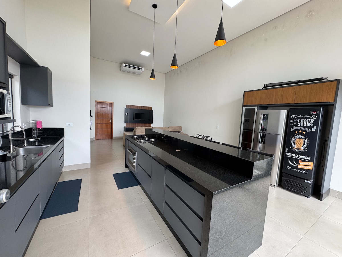 Beautiful house with swimming pool and gourmet area with all the accessories, air-conditioning in all the rooms and a shower with gas heating. The house has a beautiful swimming pool with a waterfall, a wooden deck and a great sound system for both the pool area and the gourmet area.