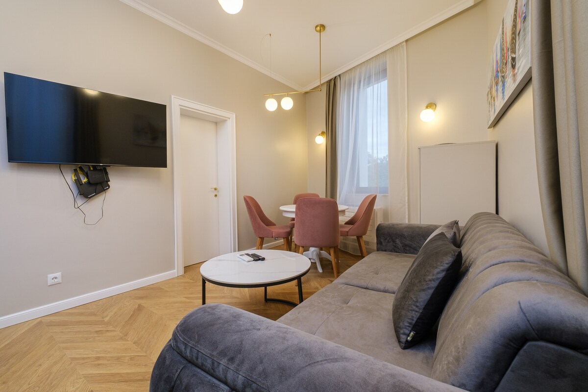 Our charming apartment is located in the heart of the city and similarly to the rhythm of the town mixes modern furnishing in a calm and relaxing atmosphere. The flat is on a 5 minutes walking distance from the main pedestrian street, the central garden and the old town. The area offers a variety of shops, markets, restaurants and bars. We aim that our guests enjoy home comfort during their stay and experience Plovdiv at its best.