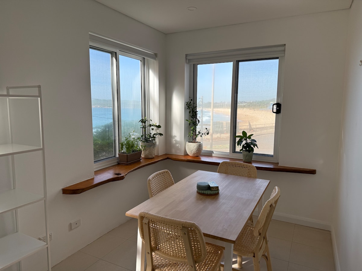 STUNNING top level overlooking Coogee Beach with large new balcony. Ocean Views from every window, Quiet, PRIVATE (the only apartment in this building that no one can look down on or around on you!) - it's pure bliss. Close to shops, beach walks, restaurants, and delicious cafe is literally downstairs. Perfect for couples, solo adventurers, and business travellers. The view is breathtaking, your own little beach heaven! Undercover Car space available! Brand NEW 5G Wifi!