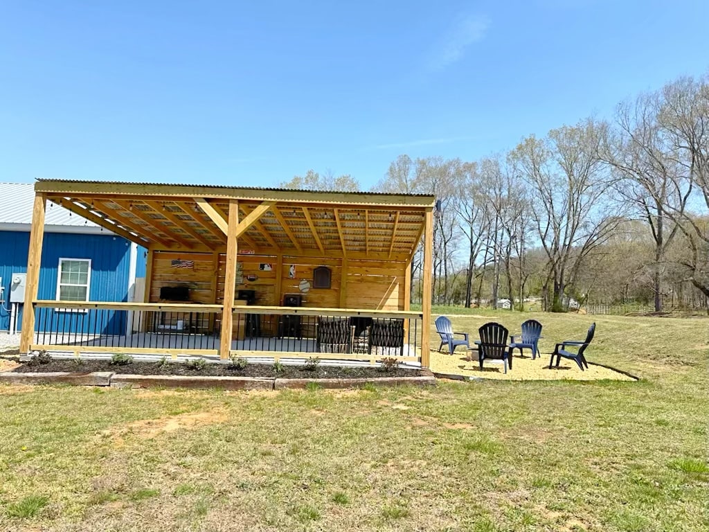 Take it easy at this unique and tranquil getaway. We offer a lot for the space in this 1 bed 1 bath private getaway. Enjoy sitting on the dock or relax in the screened in sitting room while listening to the water fountain. You will be on the premises where we run a Husky kennel and at times will hear the howling of the pack. Bring food to cook on the Blackstone grill at the outdoor kitchen. Storm shelter access for guest at the cabin.