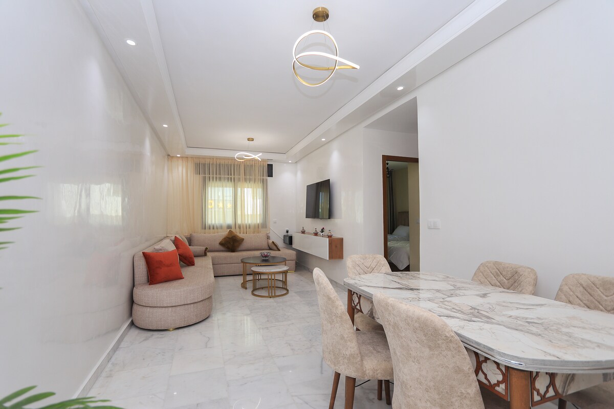 Luxurious Refurbished Apartment 3 Minutes from the Beach in Martil Enjoy this elegant apartment, newly renovated and located just a 3-minute walk to the beach. Perfect for couples, families or friends, it offers a modern living room, equipped kitchen and comfortable bedrooms. With air conditioning, Wi-Fi, and all the necessary amenities. Close to restaurants, shops, and local attractions. Ideal for relaxing and enjoying the best of Martil. Book your stay and enjoy!