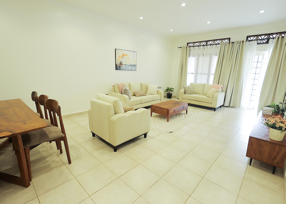 This is a Beautiful spacious ,charming, studio furnished and serviced apartment in the heart of Entebbe, just next to via via travelers cafe. We offer free Breakfast. Perfect for weekend getaway ,staycation. Unbeatable Location just 15 minutes Away from Entebbe International Airport. Fully functional kitchen , king size bed , washing machine ,private bathroom, 65-inch tv ,Netflix and wireless Wi-Fi. Air conditioning,24 hours security guards with outdoor cameras and a stand by generator.