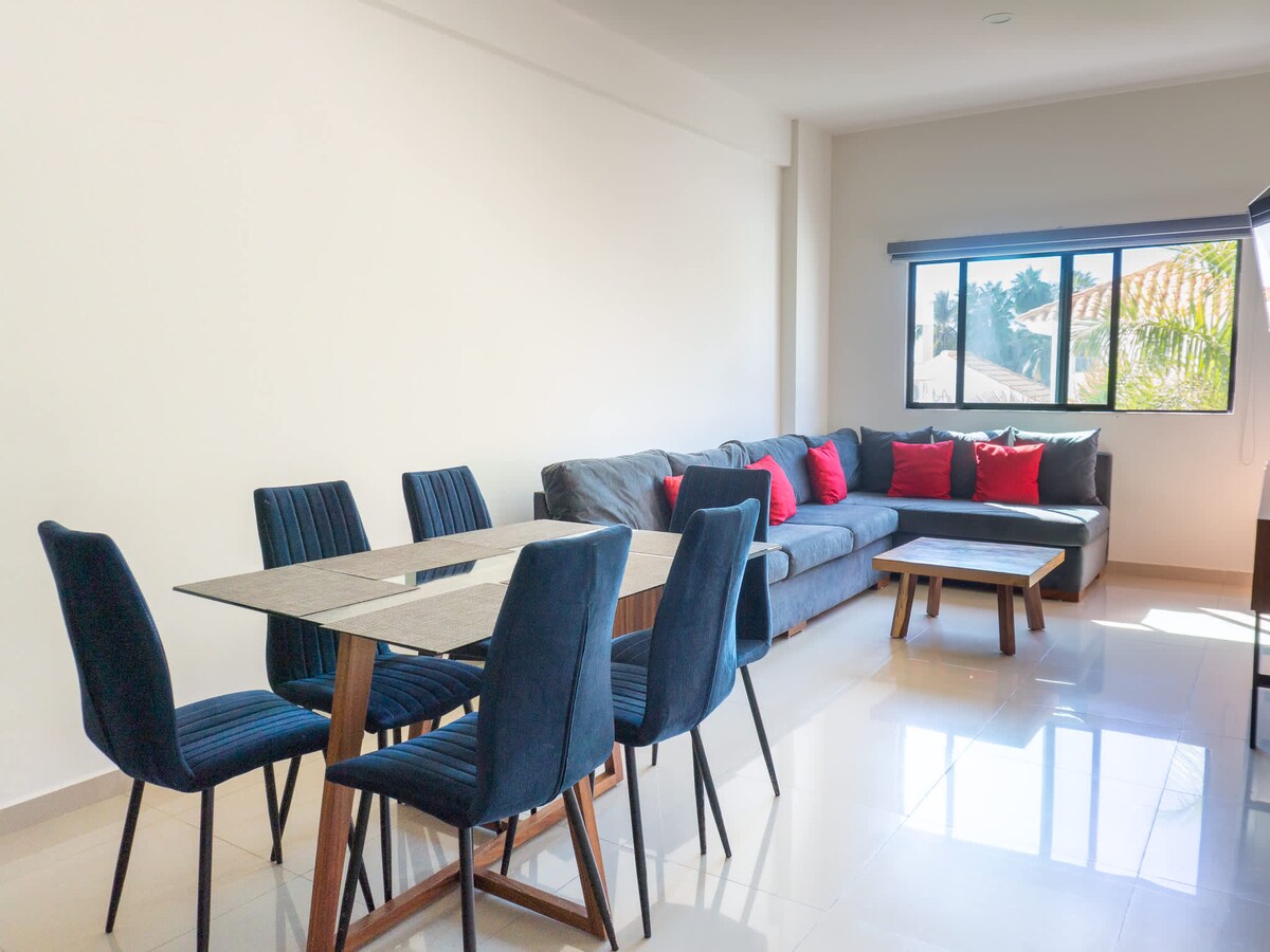 This apartment in the Ibérica building works especially well for families who want to get around Mazatlán easily. It is a few blocks from the Malecón and close to places like the Aquarium and Parque Central. The unit does not have an ocean view, but the building makes up for it with uncommon amenities: a partially covered pool, movie room, gym, game area, and a rooftop with ocean views and a grill.