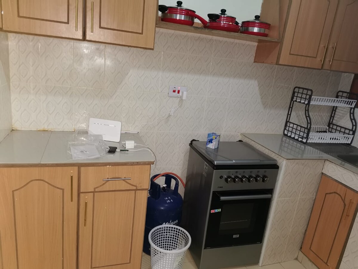 cozy,centrally located,family friendly studio offering a warm and welcoming retreat right in the heart of the city.Thoughtfully designed to make the most of its space,the studio features,a sleeping area,a small dining nook,sitting area ,a compact kitchennette&bathroom.Ample enclosed parking,high speed WiFi,hot shower,located just steps from public transport ,shops,Tsavo east national park allowing you to explore the city with ease and return to the cozy , quite place to unwind the day
