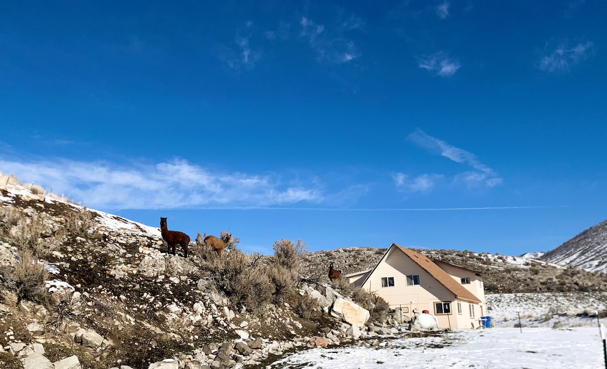 Perfect for large families, Mom’s group getaways, and multi-family trips. Our freshly remodelled 3 bedroom 3 bath A-Frame House is bright and open and instantly makes you feel at home. It sits on the hillside on 2 acres with 3 special guests: Tina, Turner, and Buck: our Alpaca/Llama family! It’s a 9 minute drive to downtown Lava and 15 Minutes to Pebble Ski Area. Plenty of room to spread out and relax
