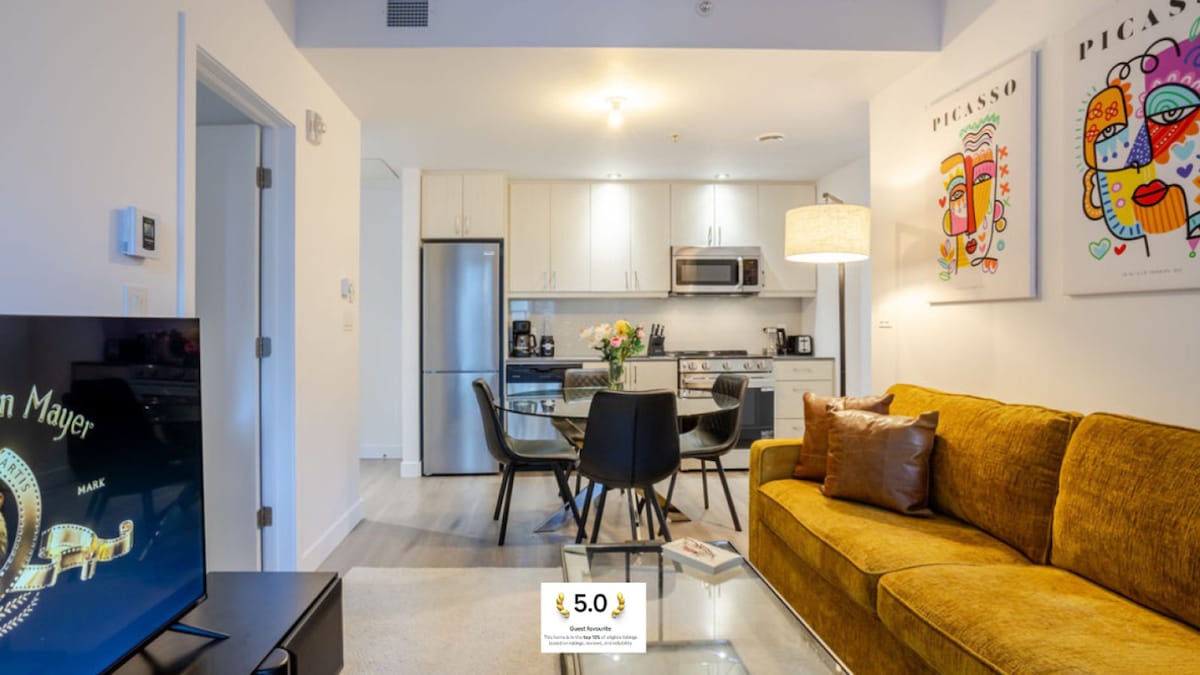 🛏️ Sleep Like a Dream – Plush queen-sized bed with hotel-quality linens. Rest easy after exploring Montreal. 📺 Netflix & Chill Ready – Smart TV with streaming apps. 🚿 Modern & Spotless Bathroom – 🍳 Fully Equipped Kitchen – Save $$ on dining out! Cook like a pro with all the essentials. 🚗 RARE FIND: FREE Parking! –Park for FREE. 🚀 Work & Play – High-speed WiFi + dedicated workspace for digital nomads. ✅ 14 mins to Downtown Montreal – Perfect for concerts, festivals, nightlife!