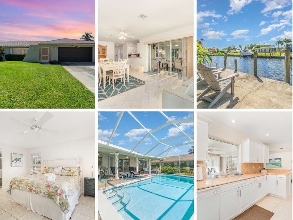 This elegant spacious 3 Bedroom + Den, 3 Bathroom house with split floor plan and large living room will truly make you feel home! High ceilings, a lot of natural light, large rooms, amazing Florida canal view, large heated pool. Fully remodeled in 2017 and feels like new. Location is amazing, close to Marina, Cape Harbour, restaurants. Excellent, beautiful and safe neighborhood. This home is perfect for your vacation!
