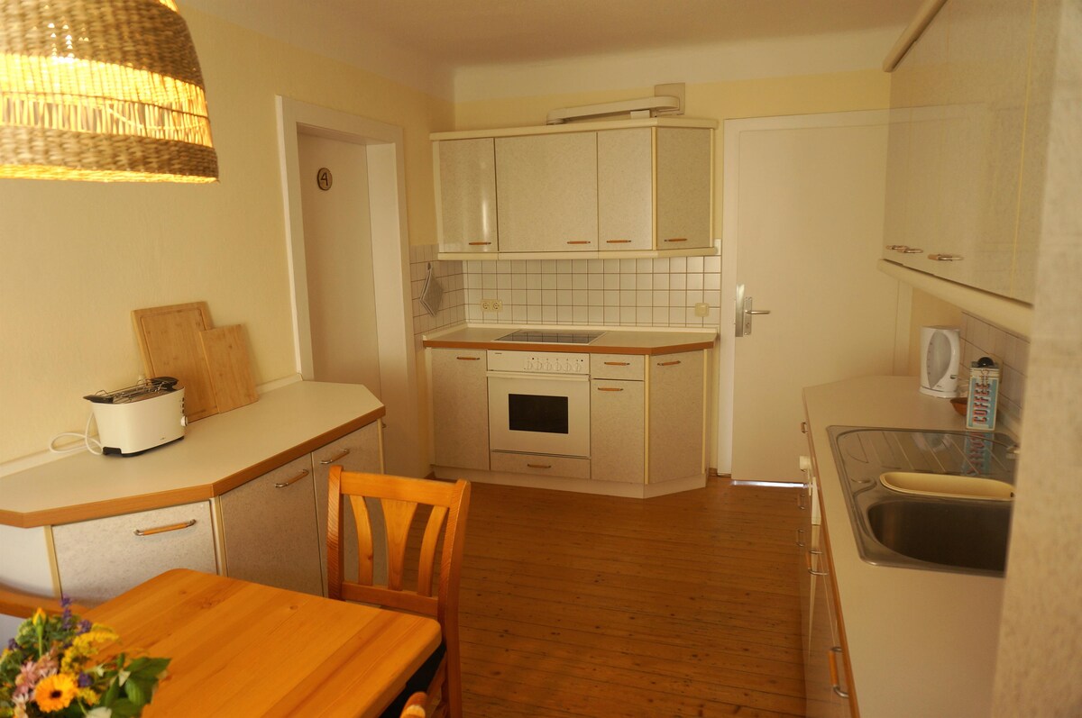 30 sqm apartment in a renovated two-family house Entryway Main room 1.60 m bed, couch (with sleeping function in 1.30 m width), dining table designed as a sideboard Kitchen fully equipped (premium appliances, coffee, tea, drinking chocolate for free) Opposite the double vanity To the left of it is the entrance to the open rain shower To the right of it is the toilet (lockable door) Electric shutters in the main room & toilet Pleated blinds on all windows Vehicle(s) can be parked directly in front of the property (dead end)! Yard not yet renovated