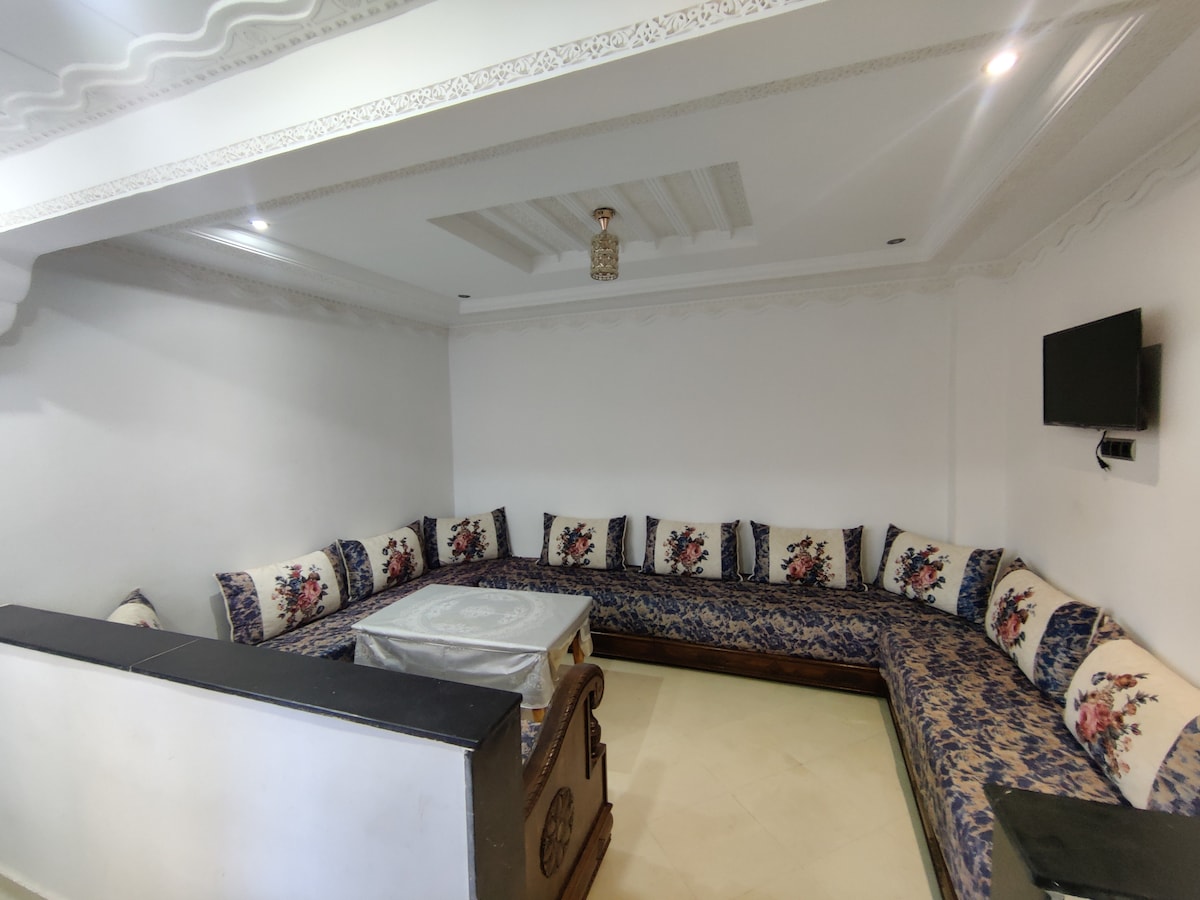 This stylish space is perfect for group trips and the city of Meknes that is considered a strategic place of tourist spots to be close to the historic city of volibulis and the charming city of Evan. It has two sleeping rooms and one for children with two large lounges and has a kitchen and a bathroom ... Well-equipped The house is 50 meters from the soani cistern is one of the best historical places of the city close to all public facilities