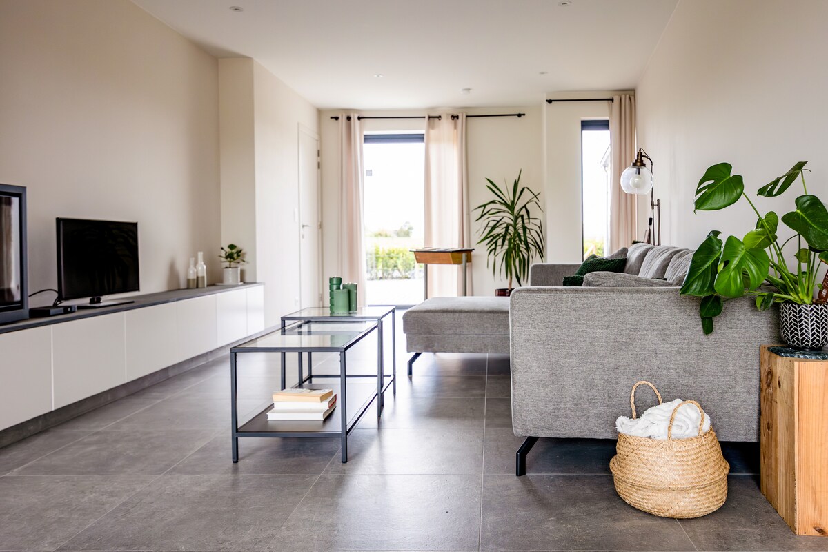 Looking for an extraordinary home, in the city that many of you will know from Ghent-Wevelgem, then this is your holiday home! The house features modern & spacious open living areas with all the comfort you need. At the first floor an ensuite bedroom with 2 single beds. At the top floor a master bedroom with open ensuite bathroom and large bathtub. Your ideal place to relax! Nearby cities: Kortrijk, Bruges, Lille, Ypres, Ghent, Antwerp, Brussels and all historical places WWI / WWII.