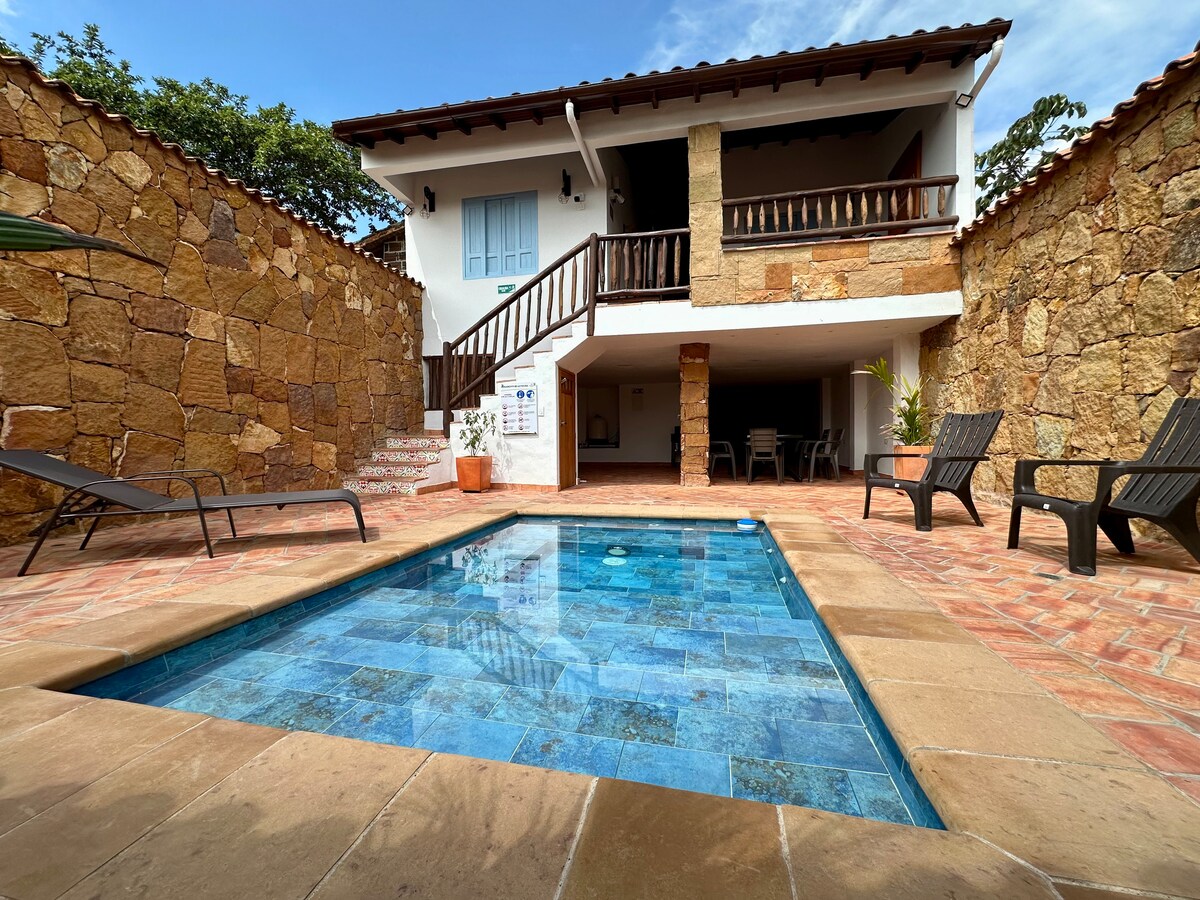 Discover the authentic Barichara experience in our charming 2 bedroom home! With a central location, enjoy our private pool, immerse yourself in the local culture and enjoy modern amenities, a dining room and a kitchen equipped with everything you need for your stay. The cozy decor and quiet patio will provide you with a perfect retreat. Book now and experience the magic of Barichara from the comfort of your temporary home!