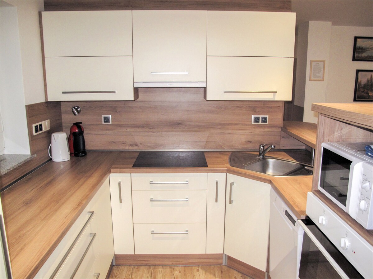 Accomodation in a apartment ( 1 bedroom + 1 bathroom + 1 kitchen) in a family house, set in a lovely garden in a quiet suburb of the city of Český Krumlov. The house (GPS 48°50'15.683"N, 14°18'12.613"E) is located near a large forest , with walks on the mountain Kleť, with an observation tower and restaurant. The house is situated about 3 km from the city centre. Český Krumlov is the famous historic town,with a UNESCO site. Another near places: Šumava Mountains and Lake Lipno.