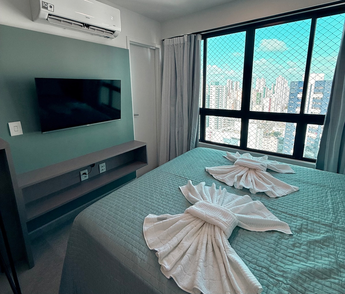 Flat novo e sofisticado no Edf Rooftop 470, em Boa Viagem - andar alto. Piscina aquecida com vista livre na cobertura, coworking, garagem, cozinha completa, Wi-Fi 300 MB e mini mercado. Perto de tudo: A 5 min da praia, restaurantes e aeroporto. Ideal para lazer ou trabalho. Check-in fácil, blackout, Smart TV com streaming, cama confortável e decoração moderna. Perfeito para casais com um filho, viajantes para turismo ou executivos exigentes que valorizam estilo, praticidade e localização.