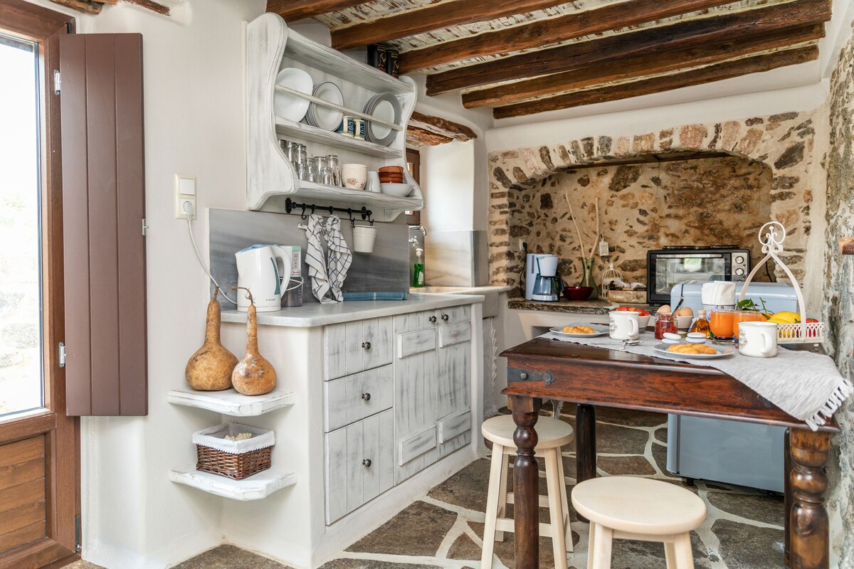Old Barn Adapted and made with passion by the two brothers Evangelos and Spyros, in traditional standards combining the Comfort and luxury of our Times. It can accommodate up to 2 people in a spacious luxury apartment, the apartment has a kitchen and a large bathroom, the old barn has an outdoor Jacuzzi and views of the blue Aegean Sea.
