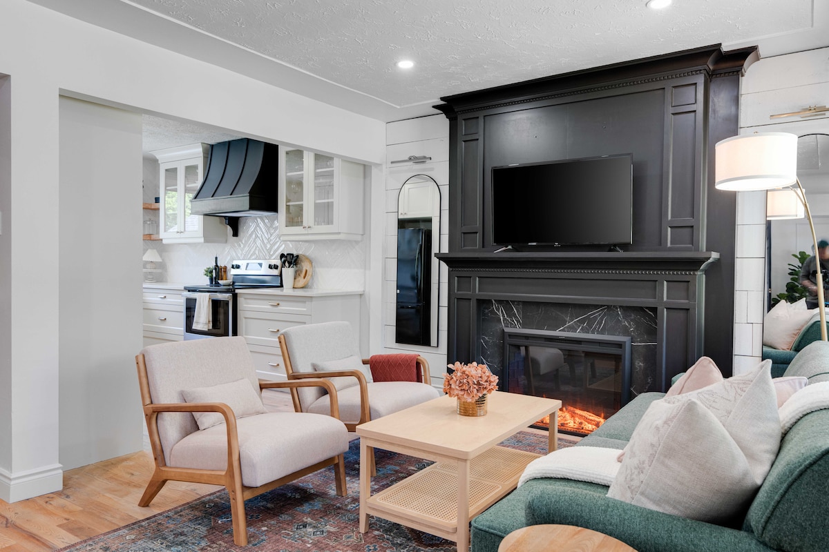 Cozy, quiet 1-bedroom with fireplace and city view