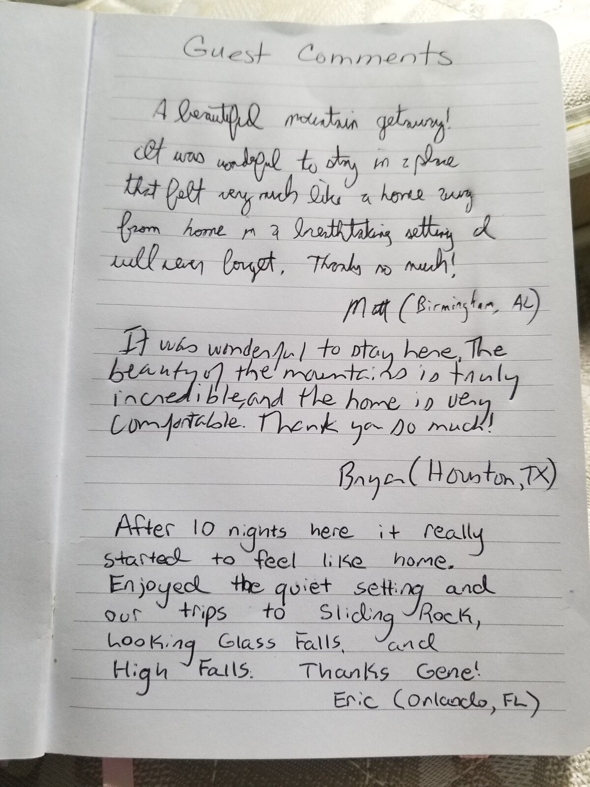 My farm is 8 miles from Brevard and a 45 min. drive to downtown Asheville. I am nestled between Pisgah National Forest and Dupont State Forest, which means unlimited hiking, waterfalls, swimming, kayaking and fishing. Cyclers will enjoy being on one of the many routes, while mountain bikers can enjoy forest trails and challenge themselves to the Oskar Blues Reeb Ranch. Equestrian folks can avail themselves to our local horse boarders and ride in both forests. There is something for everyone!