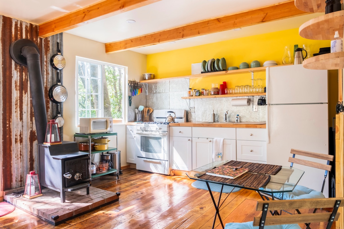 Nestled on a serene half-acre, Sleepy Hollow Haven is the cabin getaway you've been dreaming of. This mid-century modern gem has a warm, quirky charm that's hard not to love - 2 bed, 2 bath, and 1,350 square feet that feel like home from the moment you arrive. 2 minutes from town yet tucked away enough to truly unwind, it strikes the perfect balance of convenience and seclusion. A variety of activities are all within a 30-minute drive or less, and the hot tub is waiting when you return.