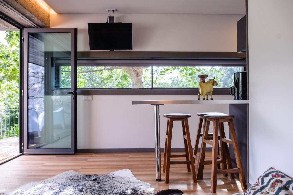 This villa is part of a mini nature resort, Quinta dos Carqueijais, immediately adjacent to the Caniçada dam. This solid wood-roofed house opens onto an extensive porch that is home to two olive trees with years of history. This house honours the region's heritage in an environment full of native trees, which are abundant at Quinta dos Carqueijais. Let yourself be captivated by Villa das Oliveiras and experience Gerês, rooted both inside and outside this unique home.