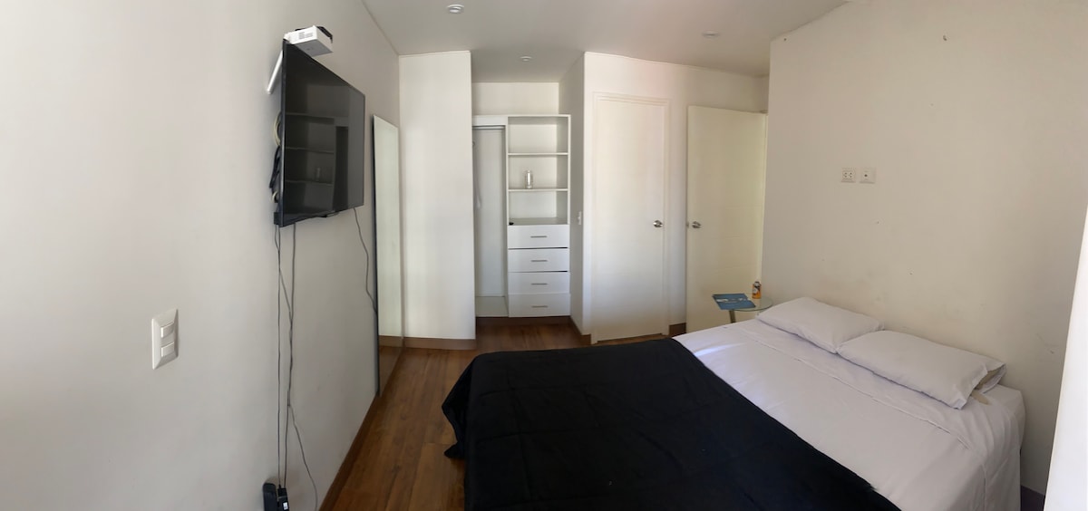 Incredible apartment with a strategic location in San Isidro, 5 minutes walking from the Financial Center of Lima. It is a beautiful one bedroom apartment, with a nice and comfy look. It includes a queen size bed, a bathroom, closet, dining table, fully equipped kitchen, Two smart TV with Netflix and a beautiful design. The building has common areas available such as: Pool, Grill, Gym and Coworking. Ideal for business trips, couples and solo travelers. Enjoy the essence of Lima.