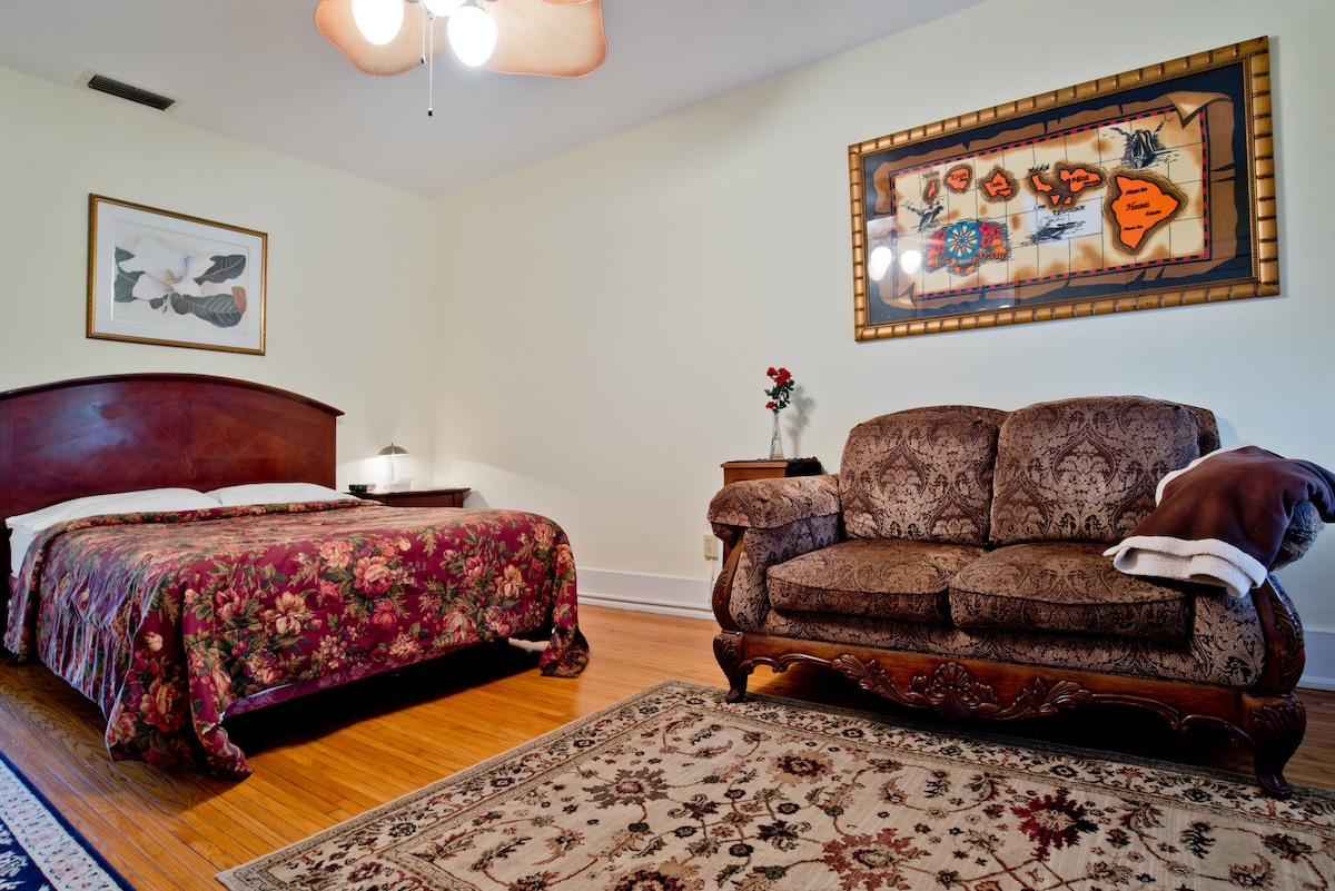 This is a beautiful, clean and very artsy & eclectic apartment exclusively designed and created for hosting guests. It is on the second floor, building that has 4 apartment. It is located downtown in the historic "DETONTI SQUARE" district. Very quiet with beautiful old homes and large oak trees. It is only 5 blocks from lively 'Dauphin Street' with all of the restaurants, bars and other activities. It has a spacious separate bedroom and separate large living room, full bathroom & kitchen