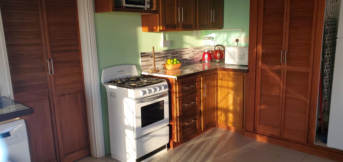 Relax alone, with a friend or with the whole family at this peaceful place to stay! Looking for a tranquil and peaceful escape from the hustle and bustle of your busy life? Look no further than our secluded, safe, modern, air conditioned newly constructed apartment unit, nestled in a serene family-friendly neighborhood surrounded by lush green vegetation. Working away from home, no problem; we have a workstation with wifi access. Chez Moi offers the perfect retreat to unwind and recharge.