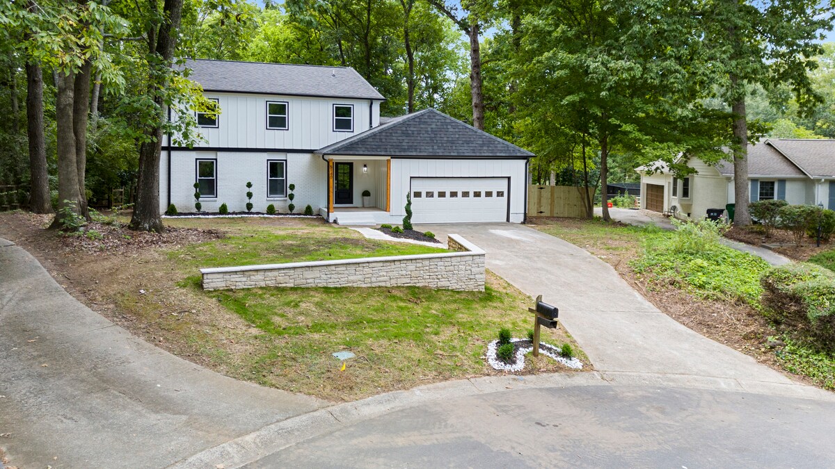 Welcome to this luxe 5BR, 3BA oasis in Ballantyne, perfect for large groups or families visiting Charlotte. Here, you'll find: ★ Keyless Entry ★ Fast Wifi ★ King Bed ★ Fully Stocked Kitchen ★ Smart TVs ★ Washer/Dryer ★ Shiplap Walls/Wood Floors ★ Fire Pit ★ BBQ Grill ★ Split level layout, 2000 sqft ♥ Please save our home by clicking the ♥ on the top right, so you can find it later and share w/ others!