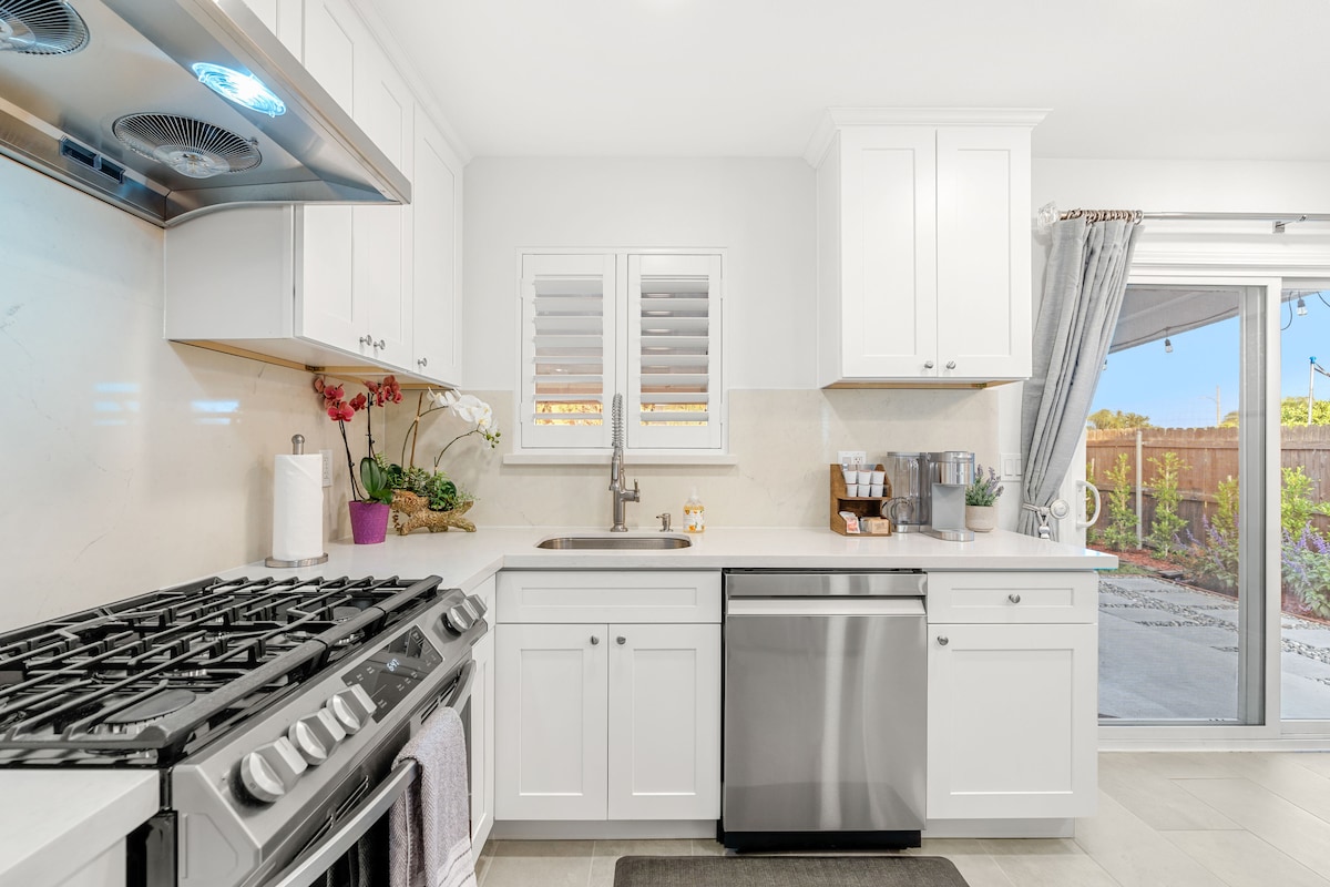 Newly remodeled, single story, cozy 5 Bedrooms, 2 baths, that can sleep 10. Easy front door ramp access. Attached Sun/Game Room with 65" TV & dedicated A/C unit. Features an expansive & functional modern living space, with up-to-date furniture, fully equipped kitchen, and BBQ. Easy access to shopping centers, major freeways, several colleges, & 5 minutes to Wheeler Park that has 5 Pickleball courts. Claremont Village, 5 min away, is a popular foodies destination which has many local eateries.