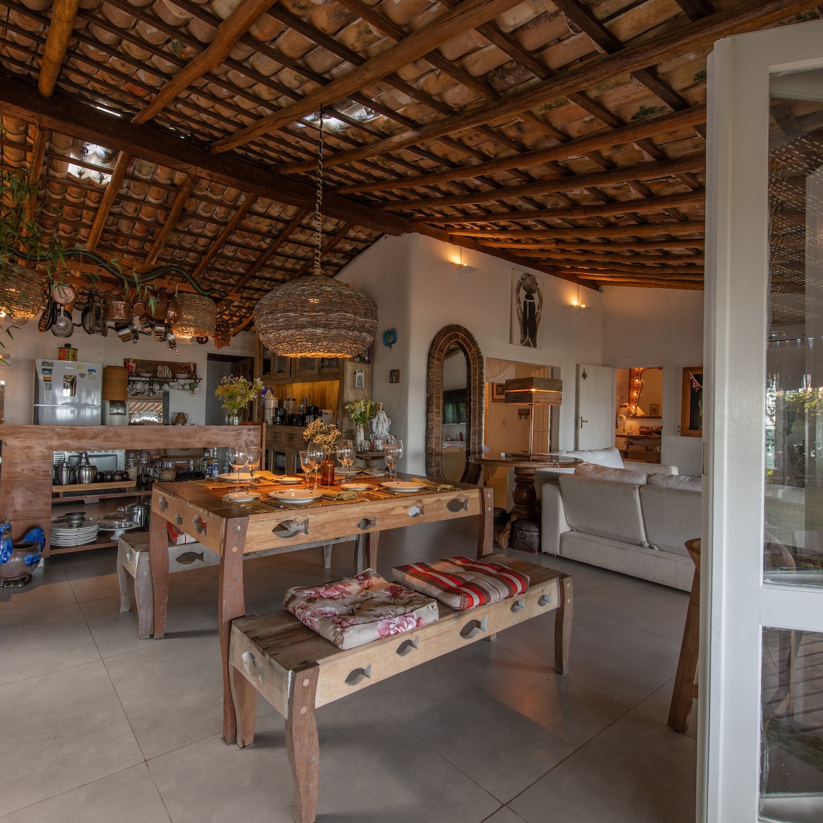 A house with a Bahian soul located a few steps from the beach, where the cool breeze and the sound of the sea come from. We are less than 5 minutes from the riverfront, walking along the sands of the village, where there are restaurants, cafes, shops, bakeries and markets. We are located on Rua 12 de Outubro, in front of Pousada San Antonio Praia. Spend wonderful days with family and friends in this delightful house with lots of style, space and distinctive architecture! Casa Maré Clara will be delighted to welcome you!!