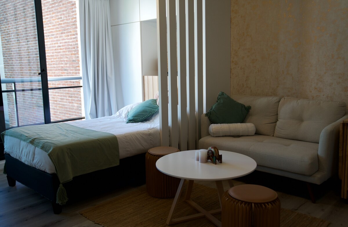 Studio apartment excellently located in Punta Carretas, 200 meters from the Rambla. The apartment offers absolute tranquility thanks to its double-glazed windows and being on the 9th floor. In addition, it is spacious and with a lot of sunlight, where the golden hour makes the environment shine. ☀️ *Top amenities: The building has a pool (summer only), a cowork, a basic gym and sauna. It also has a perfect solarium to go to read a book or just rest.