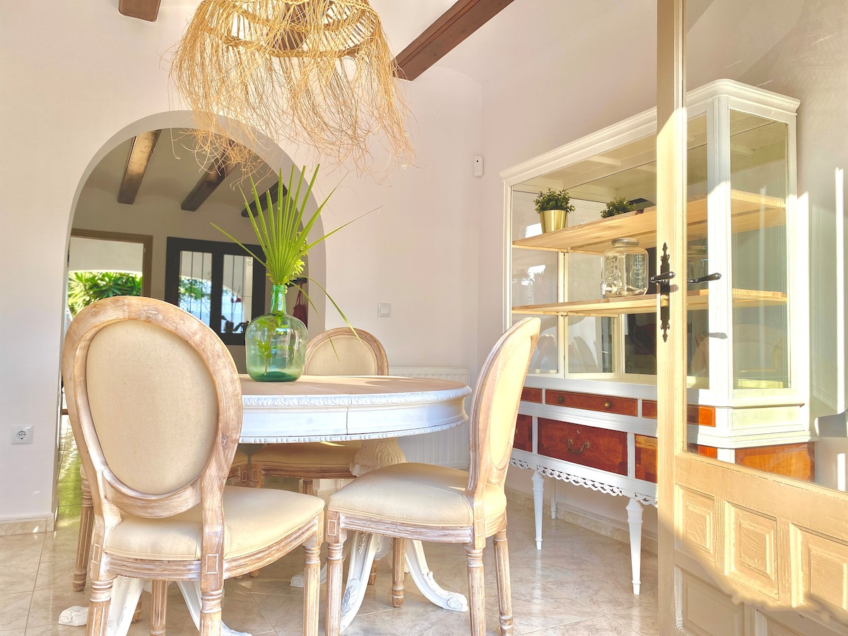 Moraira city center and 220 meters from the sandy beach. Leave the car behind! Our apartment is in the center of the small-scale authentic fishing village of Moraira, a unique location. There are many good restaurants and nice terraces by the sea and several beaches within a short walking distance. Grab the beach chairs (available) and enjoy a beach day or walk along the coast for the most beautiful views. It is comfortably furnished with air conditioning. Parking is free in the public parking lot at 200m.