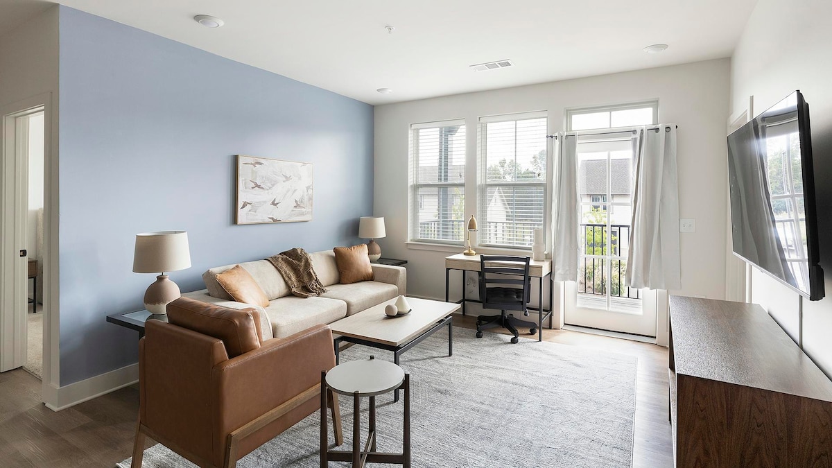 Welcome to Livano Town Madison in Madison, AL! Perfect for weekend getaways, business trips, or extended stays, our fully-furnished apartments feature full kitchens, fast WiFi, stylish furnishings, in-unit laundry, and a dedicated workspace. Enjoy a resort-style pool with cabanas and grilling areas, a 24-hour fitness center with yoga/spin room and Echelon virtual training, private workspaces, a meditation garden, and a designer clubhouse with games and lounge seating.