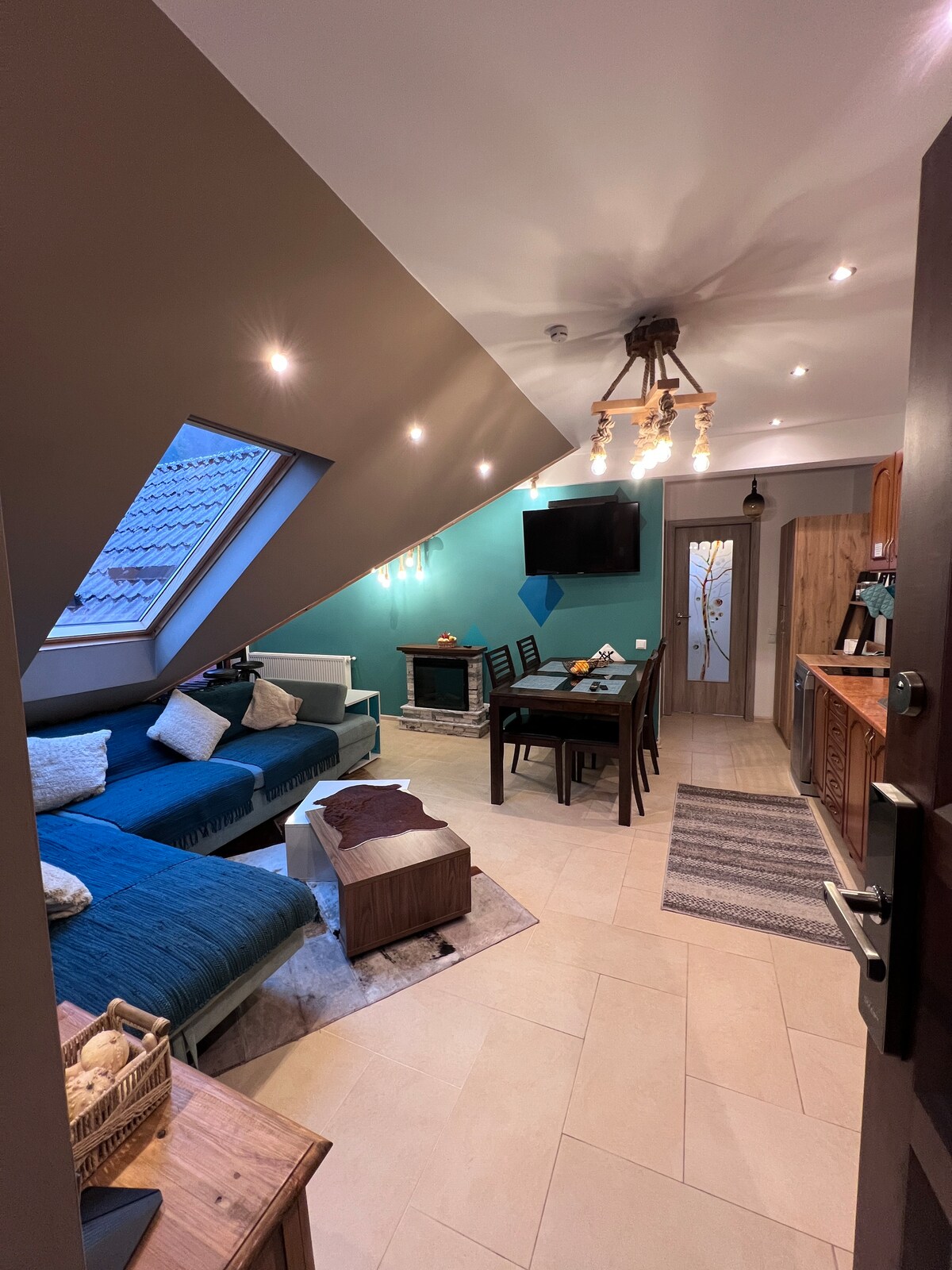 In the Furnica neighborhood, Sinaia lies a charming one of a kind penthouse situated on the second floor of a new modern apartment complex. A five bedroom, three bath condo suited for you and 9 other people. It comes with: -Indoor parking spaces for two large cars and two outside. -A fully stocked utensil kitchen with premium appliances and tableware. Real impressive fireplace and other surprises. -An all-pass access to Disney+, HBO Max, Netflix, Prime Video as well as PS4 with cool games