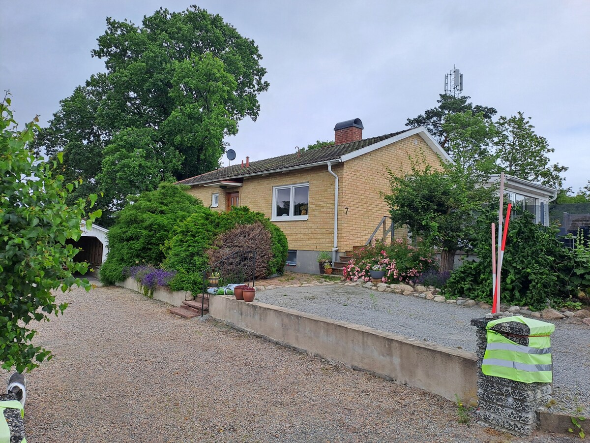 Enjoy easy access to everything from this perfectly located home base. 200 meters to beautiful Mörrumsån with the possibility of fishing, swimming, hiking and nice barbecue areas. 200 meters to Ica and Coop. 200 meters to the train station 100 meters to bus stop 3 km to Karlshamn golf course 5 km to the sea 10 km to Karlshamn Lush, secluded garden Small playground 50 meters Hot tub available. Carport and good parking facilities Highly situated overlooking Mörrum with fantastic sunsets, from the wooden deck and sunroom in the south-facing location.