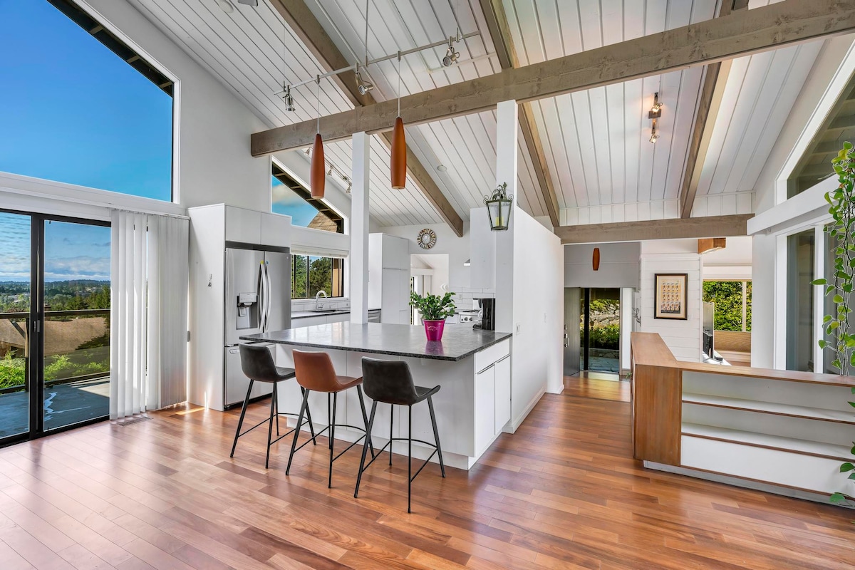 A truly unique treehouse perched 30 feet high among the trees. This amazing structure is attached to 3 large cedars and 1 giant maple using advanced tree tabs that allow the trees to sway gently, providing a natural and immersive experience. The large deck offers stunning views across the Salish Sea to the Mountains of Washington state. With all the modern amenities you could need, it's the perfect place to relax and unwind. Experience the magic and wonder of treehouse living for yourself!