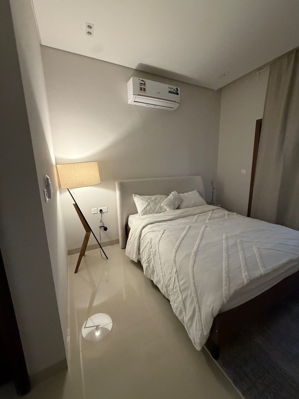 Experience living like home in very spacious 3 bedroom apartment in the ground floor. Newly renovated apartment with outdoor sitting. The kitchen is equipped with washing machine, dishwasher, microwave and toaster to maximised your time with loved ones. The apartment is within 5 to 10 minutes drive to the beach, biggest mall in Oman and 3 more malls. Bus stop is 3 minutes walk and restaurants, grocery. Space Master bedroom king size bed Room 2 two single size bed Room currently no furniture