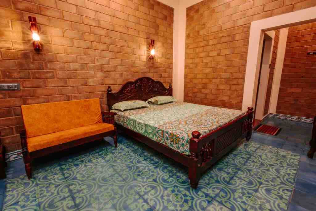 For a private family/couples holiday at Kovalam, settle into this rustic yet cozy 2 bedroom mini villa Unwind with your loved ones only as the entire property will be yours. A private dip pool to cool off after a sunny day on the beach. A 10 minutes drive away from the crowded rooms at Kovalam beach, at the Cocoon, you will find your perfect earthy hideout.