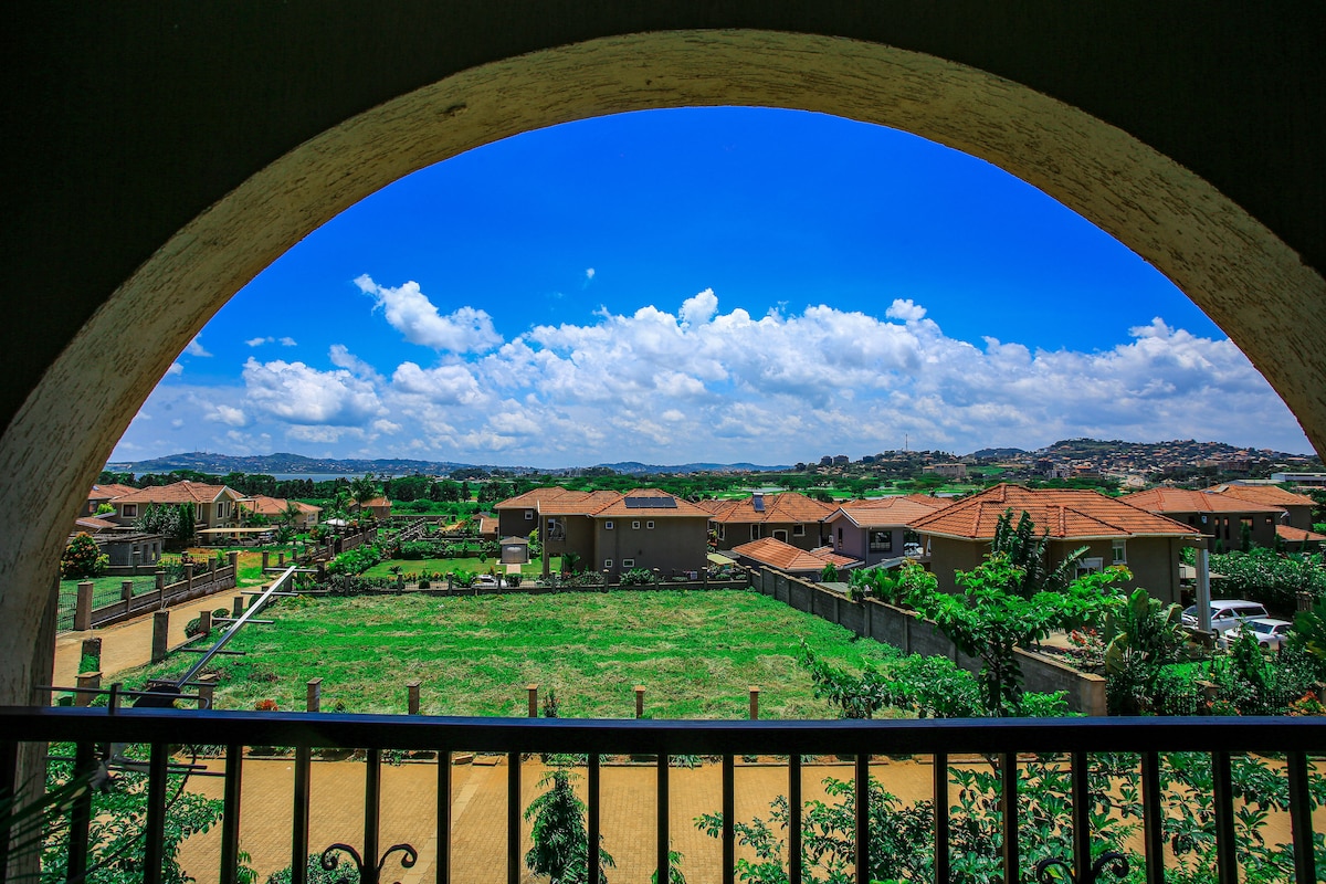 Nestled in the tranquil, upscale neighbourhood of Lubowa, this contemporary Condo offers an ideal retreat for solo travellers or those seeking a relaxed getaway with family & friends. Located within walking distance to supermarkets, cafés, & restaurants. Enjoy breathtaking views of Lake Victoria & its picturesque surroundings right from the comfort of your balcony.